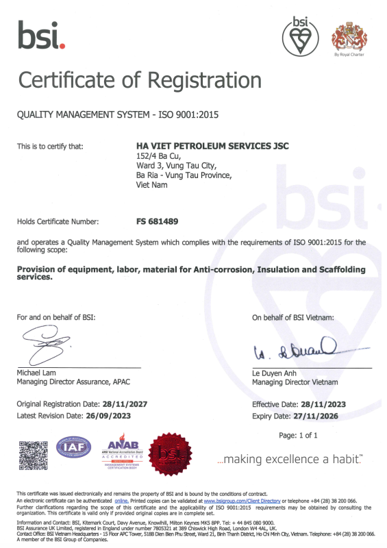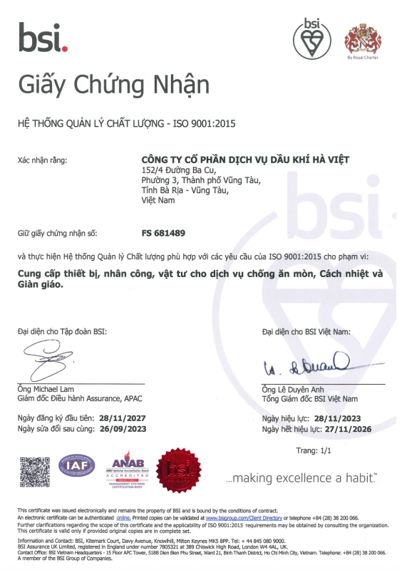 Ha Viet Petroleum service., JSC was founded in 2013 in Vung Tau City, Viet Nam. We are is a leading anticorrosion, insulation, scaffolding, PFP coating… related services on FPSO, FSO, Platform… for the Viet Nam’s Oil and Gas industry and certain other industrial applications.